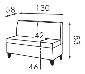 довжина - 130 см., глибина - 58 см., висота - 83 см.