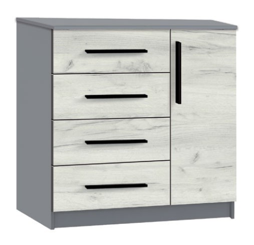 КЕНОН 4 + 1S комод сірий шифер+ дуб крафт білий