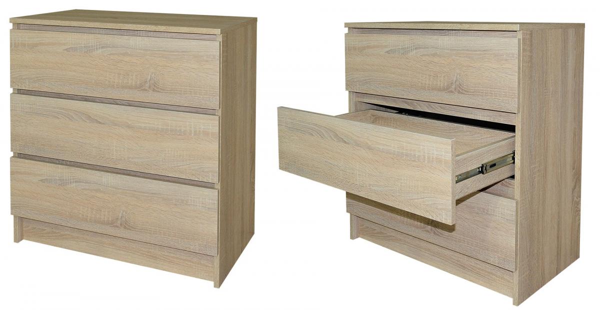 Комод на 3 висувні ящики з фасадами без ручок R-3 Стильний та ергономічний комод виконаний у сучасному стилі Відмінно впишеться в будь-який інтер'єр Комод: - сучасний стиль - Містка тумба з трьома ящиками на телескопічних напрямних - Ящики тумби відкриваються за фасад без ручок. Матеріал: ДСП Ламіноване 16мм Відправляємо у розібраному вигляді Новою Поштою по всій Україні