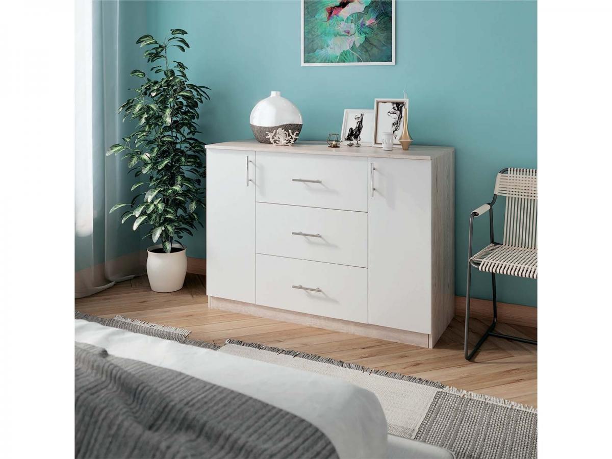 Комод №7 — універсальна модель для зберігання, яка поєднує закриті відділення за дверцятами та три зручні шухляди. Така конфігурація дозволяє розділити простір для різних типів речей — від текстилю до документів чи побутових дрібниць. Комод ідеально підходить для використання у вітальні, спальні, офісі або кабінеті.