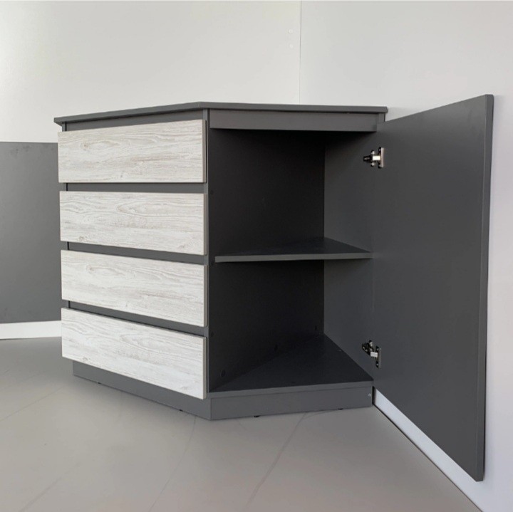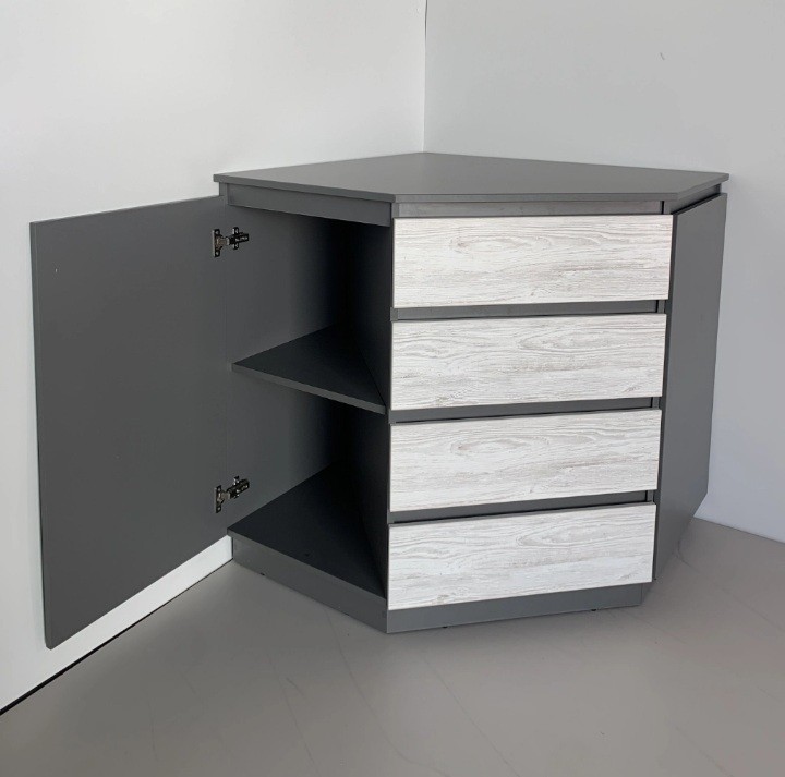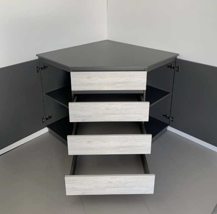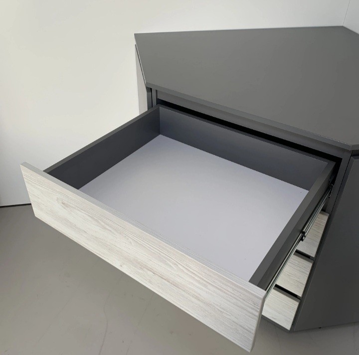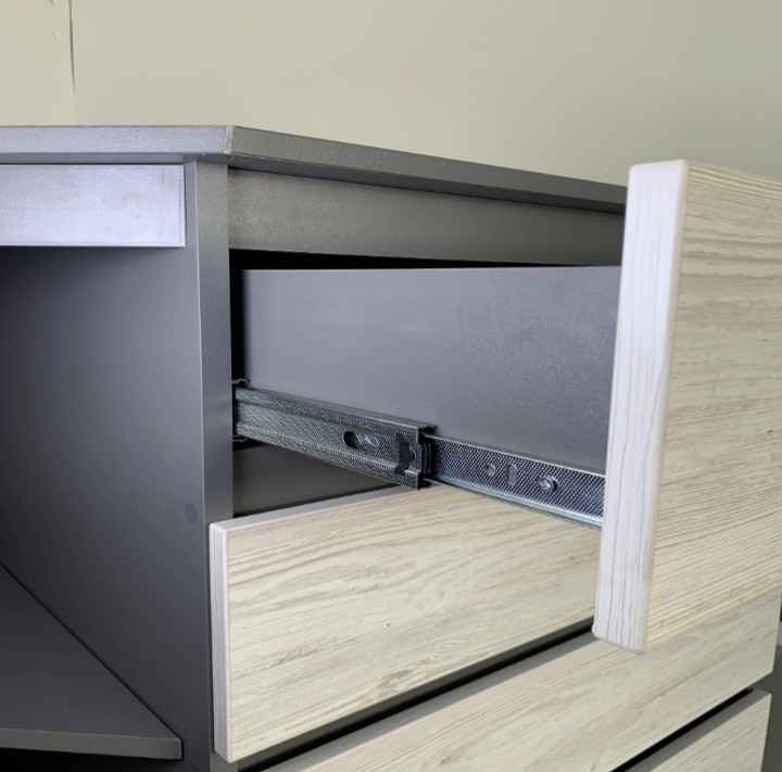Фурнітура: базова комплектація. Можлива заміна на завіси з дотягом GIFF, телескопічні направляючі, тощо за домовленістю з клієнтом.