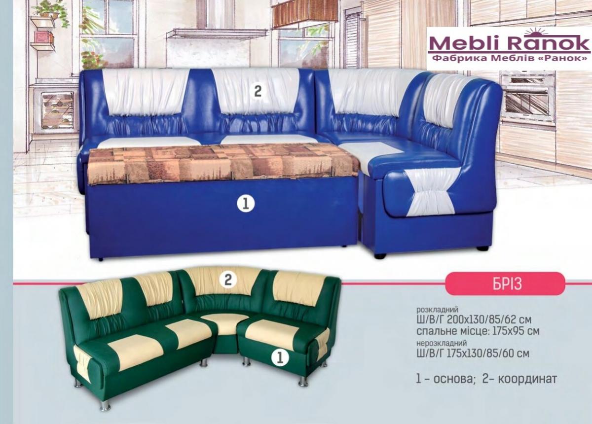Габарити кухонного куточка роскладного"Бріз"