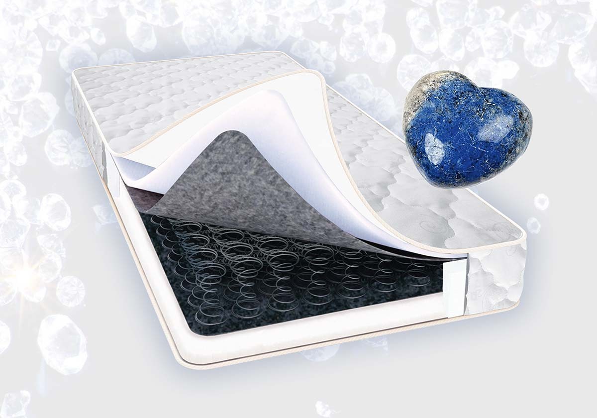 Чехол этого матраса изготовлен из жакардовой ткани и дополнительно прошит с одной стороны хлопком, а с другой - шерстью, что позволяет повысить комфортность сна независимо от сезона. Пружинный блок "Bonnel" обеспечивает упругость и равномерное расспределение нагрузки. Синтепон, спандбонд, термовойлок повышают эксплуатационные характеристики матраса. В качестве внутреннего наполнения исспользован пенополиуретан высокой плотности, а еврокаркас предотвращает деформацию матраса.