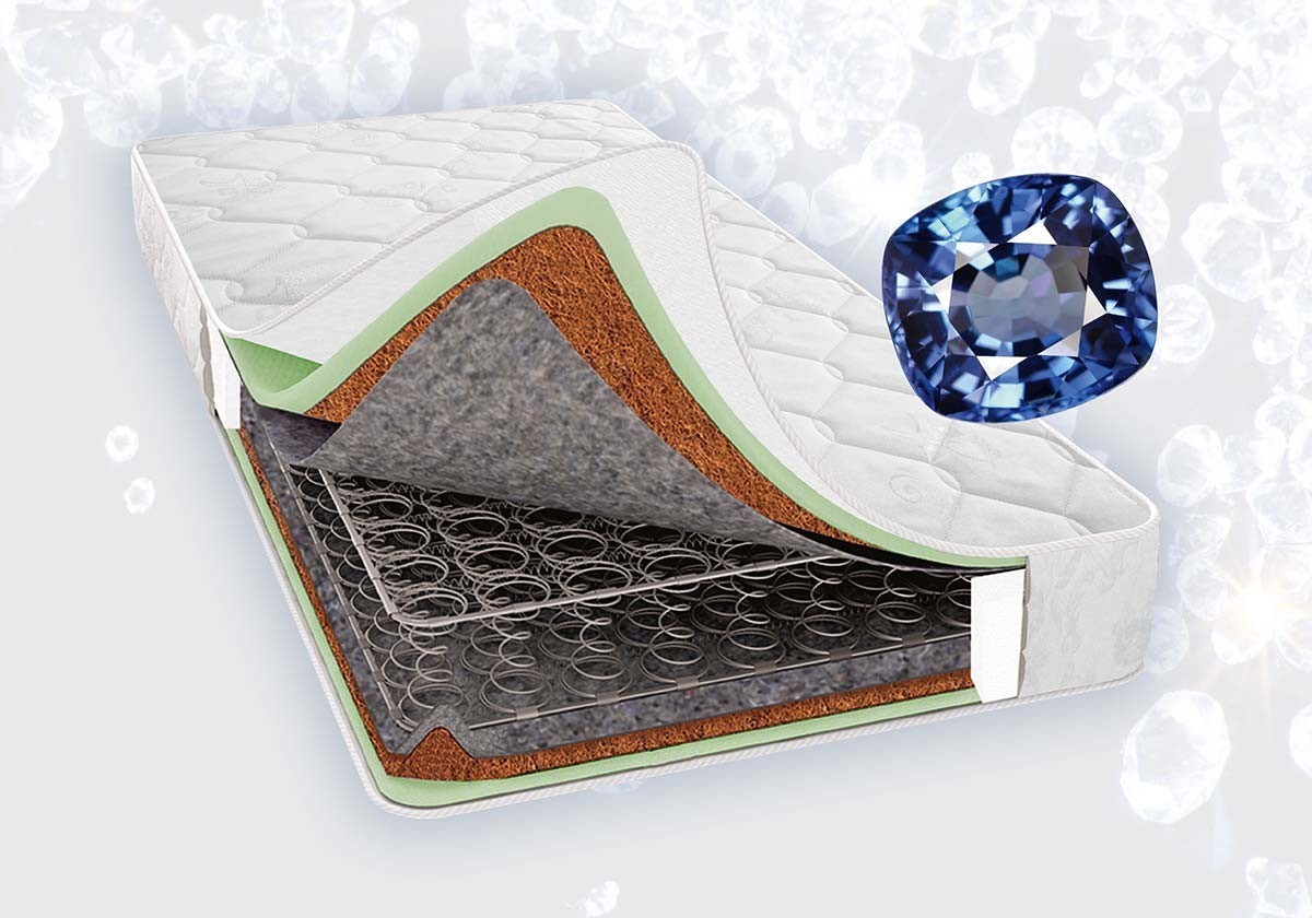 Двухсторонняя модель, исполнена на основе пружинного блока "Bonnel", усиленного двумя стальными рамками, которые хорошо фиксируют геометрию блока и увеличивают стойкость матраса к увеличенным нагрузкам. Использование кокосового волокна в данной модели повышает ортопедические свойства. В качестве наполнения взят инновационный экологический материал - биофоам.