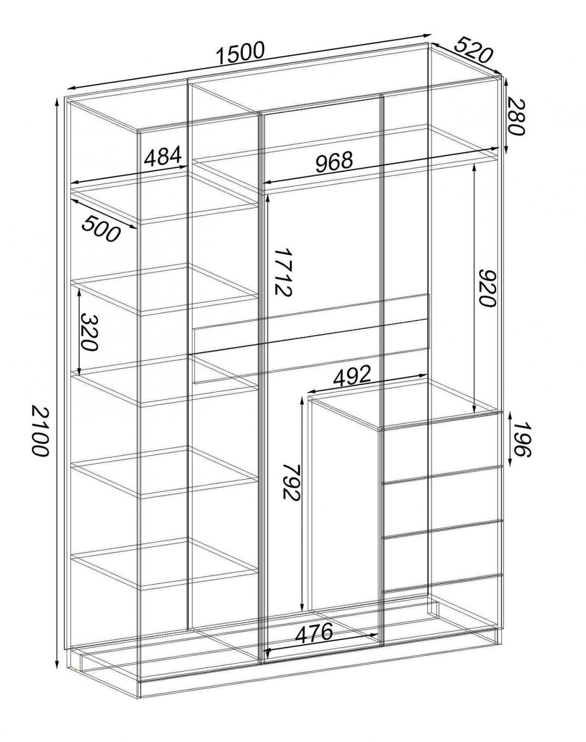 Шафа Крістал 2, Білий/Антрацит, 1500х520х2100