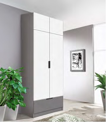 Шафа розпашна з видвижним ящиком Комфорт 900мм сірий шифер +білийШафа розпашна з видвижним ящиком Комфорт 900мм дуб крафт сірий +білий