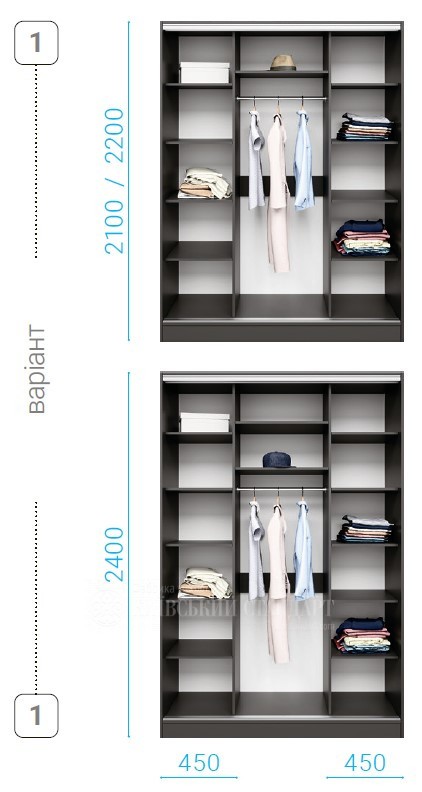 Ви можете самостійно компонувати як наповнення так і фасади вашого шкафу-купе.