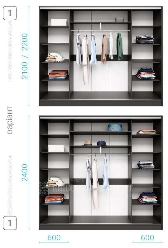Ви можете самостійно компонувати як наповнення так і фасади вашого шкафу-купе.