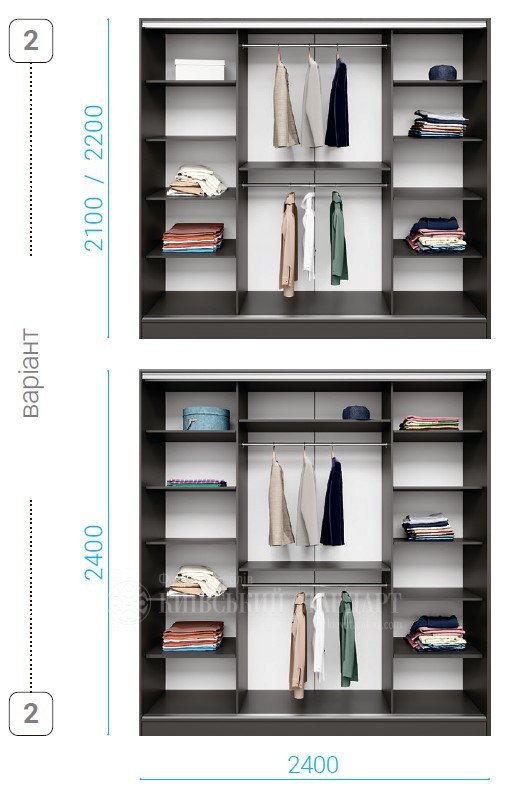 Ви можете самостійно компонувати як наповнення так і фасади вашого шкафу-купе.