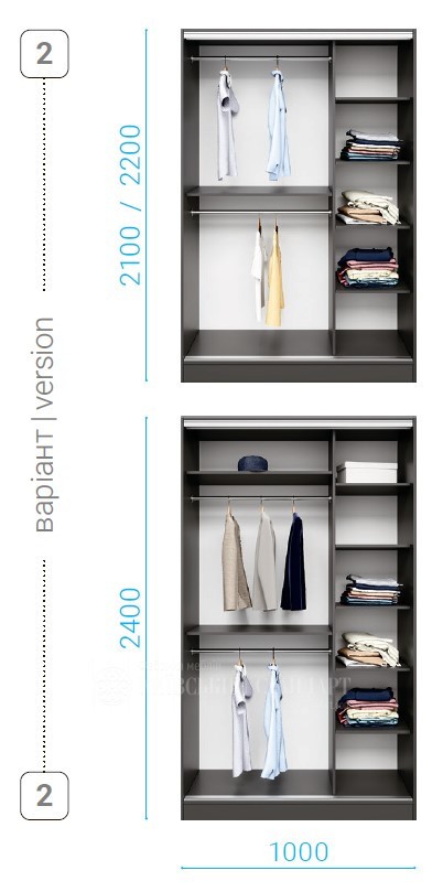 Ви можете самостійно компонувати як наповнення так і фасади вашого шкафу-купе.