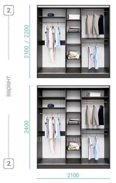 Ви можете самостійно компонувати як наповнення так і фасади вашого шкафу-купе.