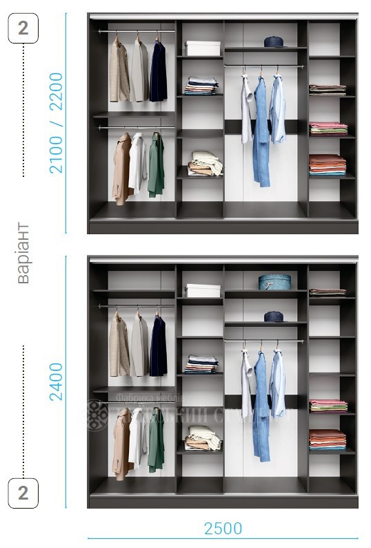 Ви можете самостійно компонувати як наповнення так і фасади вашого шкафу-купе.