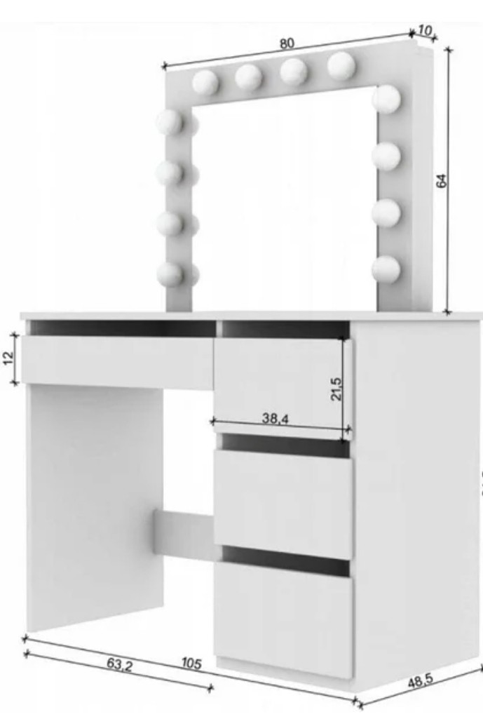 Туалетний столик - незамінний элемент спальні. Це практичний та элегантний аксессуар. Кожний з нас мріє відчувати себя впевнено . Данний столик оснащений чотирьма ящиками,дзеркалом та світодіодними лампочками. Мебель відрізняється простотою та легкістю, а також якістю виготовлення та сучасним дизайном.