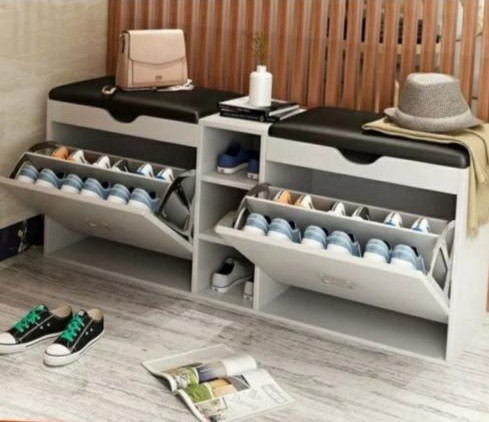 Тумба для взуття-це мініатюрний шкафчик з дверцятами.Вона часто має шухляду для зберігання захисних засобів та щіток для взуття.Глибина тумби для взуття зазвичяй 25-35 см.Тому вона увійде в інтер’єр навіть невеликих приміщень.Переваги конструкції тумби для взуття в тому ,що на полицях,як на вітрині магазину,можна відразу бачити все взуття.
